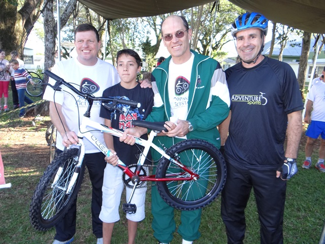 Na chegada houve sorteio de muitos brindes, entre eles três bicicletas. Os