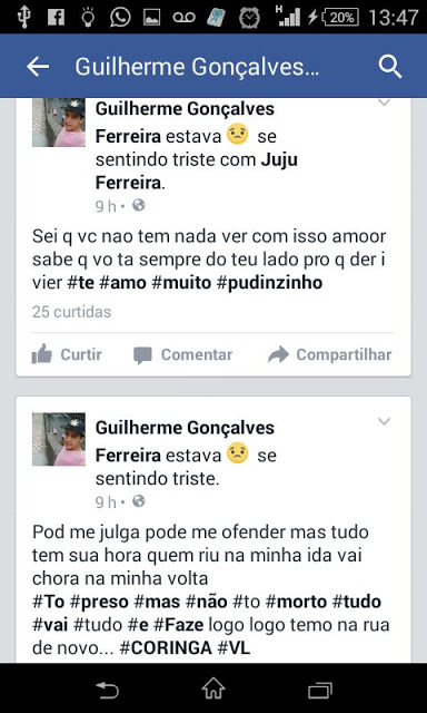 De segunda pra terça a polícia prendeu o Nanico pela segunda vez. De novo estava envolvido com droga. Pois é, ele nem bem chegou na cadeia e já avisou seus amigos que está meio triste. E fez isso como todo preso; pelo celular. Também estou triste.