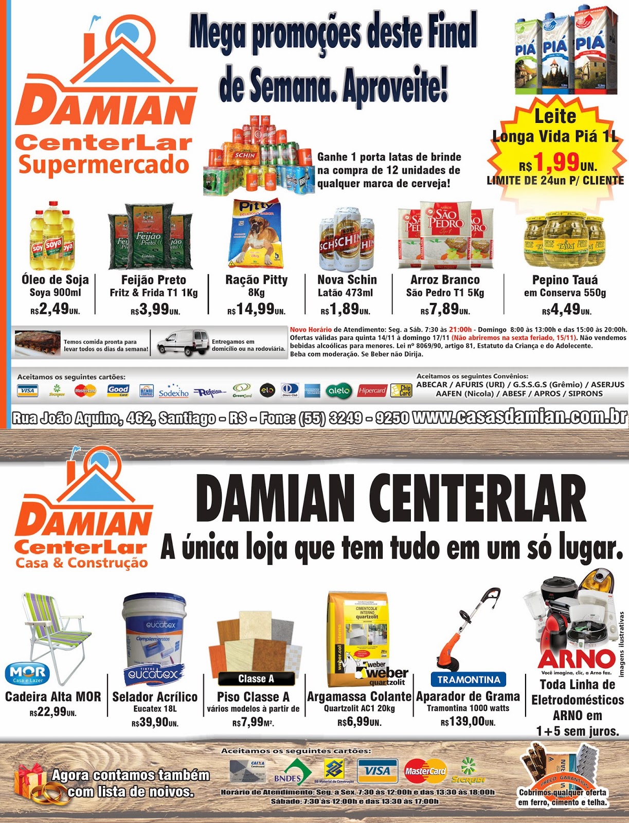 Geral InícioGeral Antecipe suas compras no Damian Center Lar Publicado em 14/11/2013 POR NP Expresso FacebookTwitterWhatsAppLinkedinTelegram Nesta sexta é feriado. Então, vá ainda hoje aproveitar as ofertas Damian. Entre elas estão o leite Piá, por apenas 1,99. E quem comprar um fardo de cerveja ganha um porta-latas. DEIXE UMA RESPOSTA Cancelar resposta Comentário: Por favor digite seu comentário! Nome:* Por favor, digite seu nome aqui E-mail:* Você digitou um endereço de e-mail incorreto! Por favor, digite seu endereço de e-mail aqui Site: Salve meu nome, e-mail e site neste navegador para a próxima vez que eu comentar. Siga o NP Expresso 184.758 132,325FãsCurtir 72,154SeguidoresSeguir Notícias Recentes Nacional Trabalhador morre após cair do terceiro andar Itapema, SC - Carlos Roberto da Rocha, 55 anos, morreu na manhã de sábado... 09/03/2026 Nacional Filho liga para polícia após ver a mãe ser morta a facadas dentro de casa Santa Luzia, Minas Gerais - Mariana Camila de Oliveira Santos, 30 anos, foi morta... 09/03/2026 Política Foram-se os tigres, foram-se os bugres, mas a história continua O investimento foi de 300 mil do próprio município Jaguari - RS - A reinauguração... 08/03/2026 Nacional PL vai trabalhar para que fim da 6×1 não seja votado, diz Valdemar a empresários Brasília, DF - O presidente nacional do PL, Valdemar Costa Neto, disse que o... 08/03/2026 Leia Também Nacional Trabalhador morre após cair do terceiro andar Itapema, SC - Carlos Roberto da Rocha, 55 anos, morreu na manhã de sábado... 09/03/2026 Nacional Filho liga para polícia após ver a mãe ser morta a facadas dentro de casa Santa Luzia, Minas Gerais - Mariana Camila de Oliveira Santos, 30 anos, foi morta... 09/03/2026 Política Foram-se os tigres, foram-se os bugres, mas a história continua O investimento foi de 300 mil do próprio município Jaguari - RS - A reinauguração... 08/03/2026 VER TODAS AS NOTÍCIAS
