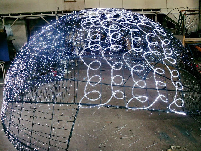 iluminado. Ao todo são 200 metros de mangueiras de luzes de LED e 12 mil