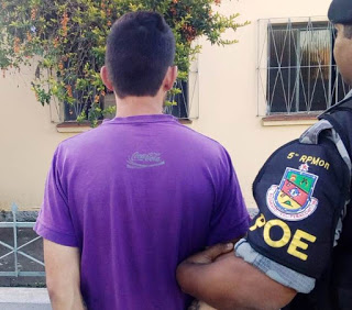Santiago – Uma guarnição de serviço do Pelotão de Operações Especiais (POE), durante preservação da ordem pública, abordou o indivíduo de iniciais P.V. Conforme o sistema informatizado, ele estava em situação de foragido. Diante dos fatos, foi encaminhado à Delegacia para providências. (foto acima)