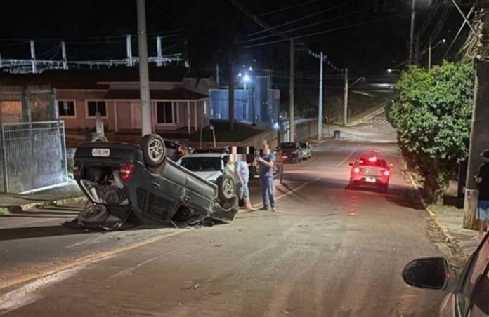 Panambi – Na noite de sábado (3), um Gol se envolveu em acidente, quando o motorista acabou batendo em outros dois carros e capotou o veículo.