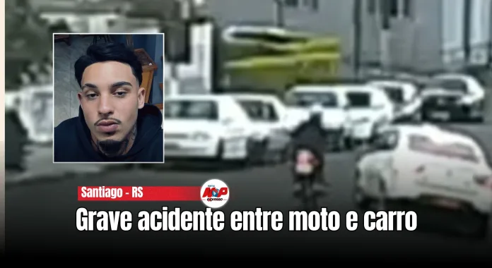 Santiago – RS – Um acidente entre moto e táxi causou a m0rt3 de Kaique dos Santos, de 18 anos, no início da noite deste sábado, 28, por volta das 19h, na Rua Silveira Martins, perto da esquina com a General Canabarro.