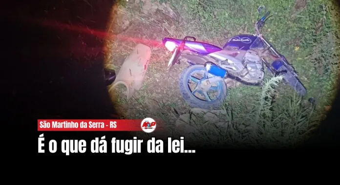 São Martinho da Serra – RS – (Região de Santa Maria) – Um jovem de 27 anos acabou na delegacia na noite de domingo após tentar dar linha na polícia e terminar a fuga dentro de um buraco. Tudo começou quando os policiais faziam uma barreira e viram o sujeito saindo de uma praça em alta velocidade, fazendo um barulho ensurdecedor com o escape da moto estragado. Ao receber ordem para encostar, o piloto resolveu testar a sorte e acelerou.