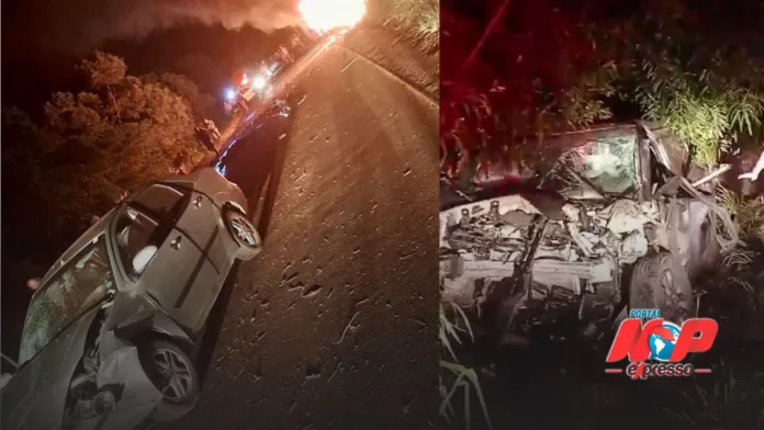De acordo com informações da Brigada, um Chevrolet Omega invadiu a pista contrária e colidiu frontalmente com um Citroën C3 Aircross. O impacto da batida foi tão violento que um terceiro veículo, um Ford Focus, que seguia logo atrás do Citroën, também foi atingido por fragmentos dos carros envolvidos na colisão inicial.