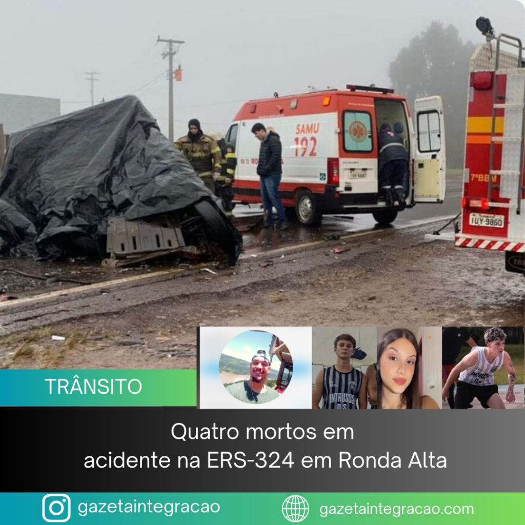As quatro vítimas fatais do acidente ocorrido na manhã de domingo (14) em Ronda Alta foram identificadas. O acidente envolveu um Renault Sandero de Chapecó (SC) e uma carreta Volvo de Sarandi.