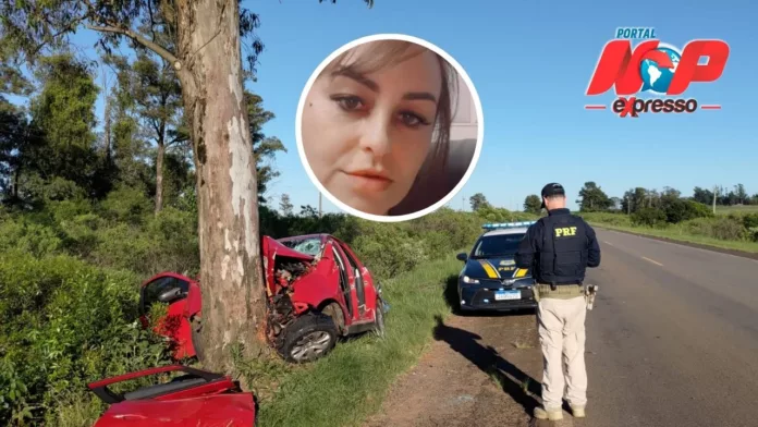 Santiago – A vítima é Vanessa Rodrigues Brandli, de 43 anos. Ela dirigia um Siena pela BR-287, sentido Unistalda/Santiago, e perto Invernada Reiúna perdeu o controle do veículo, vindo a bater em uma árvore.
