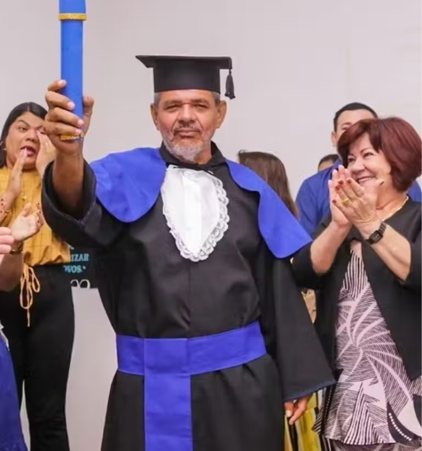Rio Branco (Acre)-O morador de rua Gilson Kennedy Rosária Pereira, 56 anos, superou as adversidades de viver nas ruas em Rio Branco, Acre, e realizou seu sonho ao concluir o ensino fundamental. Antes de enfrentar o vício e a vida nas ruas, ele havia servido no exército, estudado, mas não concluído o fundamental. Após três anos como morador de rua, Gilson encontrou no Centro Pop uma oportunidade de ressignificar sua vida. Participando do EJA, já alfabetizado, ele pulou algumas etapas e, com determinação, concluiu o ensino fundamental.