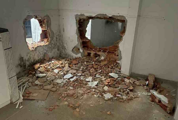 Ao chegar ao local, encontrou um buraco na parede e constatou que ao menos 100 armas foram levadas da sala-cofre.