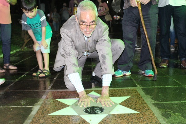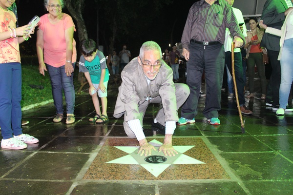 Neste ano, o comunicador e teatrólogo Jones Diniz deixou a sua marca no cimento na praça e no coração de Santiago, como homenagem à sua brilhante trajetória profissional e artística.