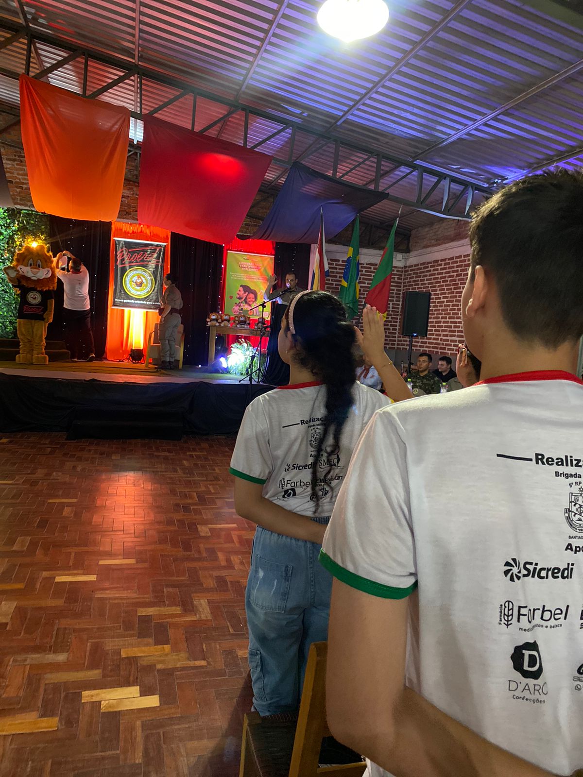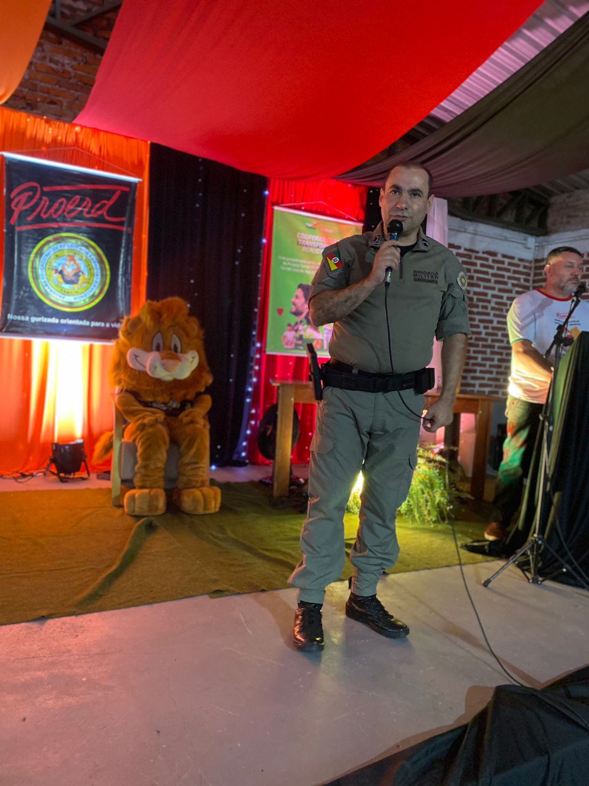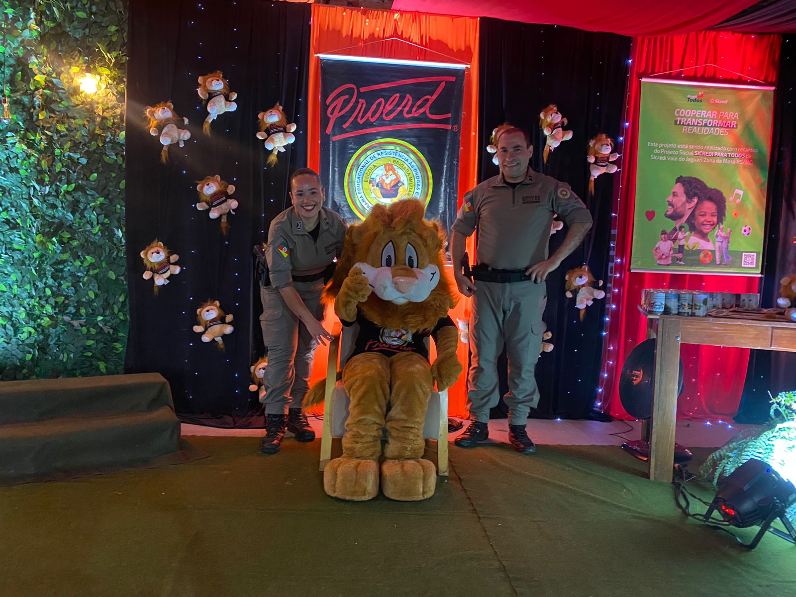 O evento também contou com a participação especial do Leão, símbolo do Proerd, que fez um grande sucesso com os alunos.