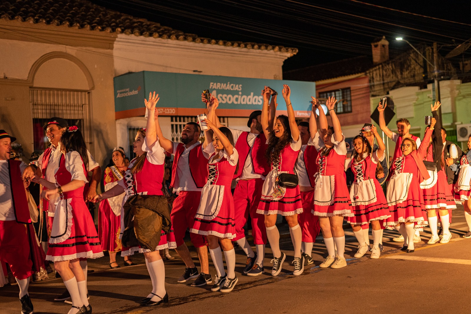 Uma multidão lotou a rua 7 de Setembro para acompanhar a primeira noite e os desfiles dos blocos de Kerbs. A festa foi marcada por muita alegria, emoção e um sentimento de celebração. Nesta sexta (27) a programação segue dentro do Clube Vicentino e vai até domingo. A Banda Bier Fest será a responsável por animar o público.