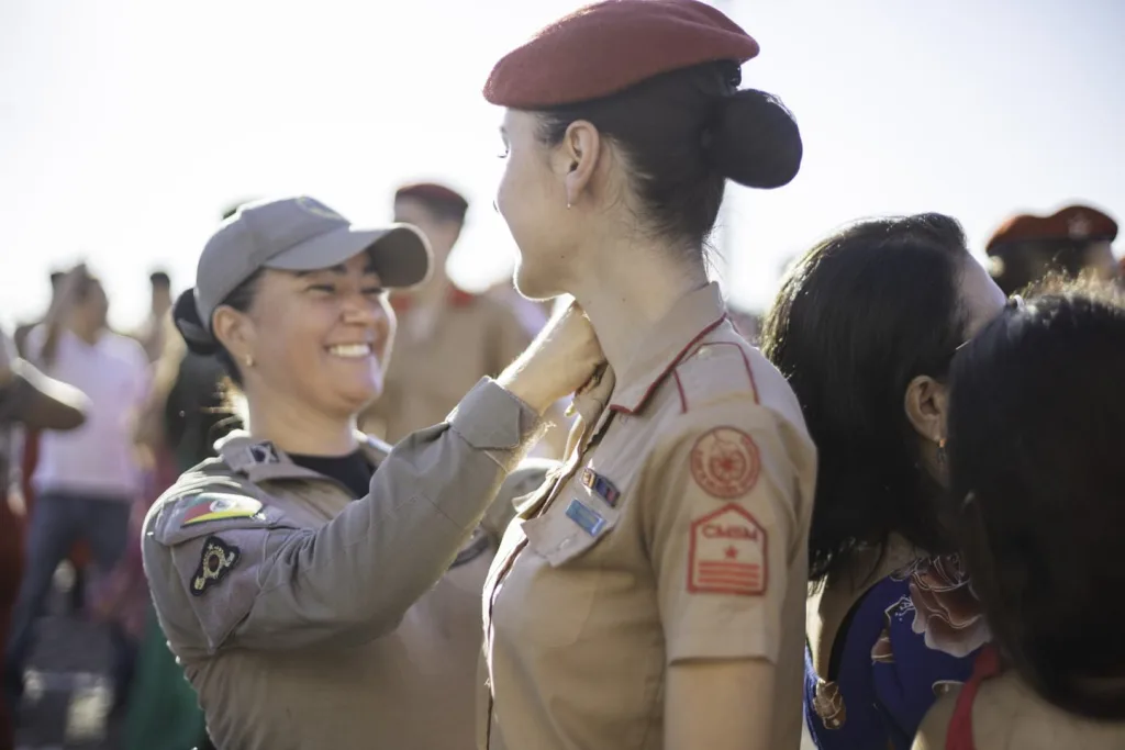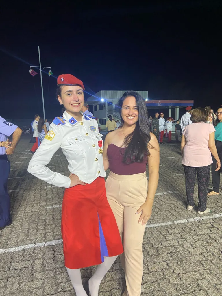 Filha da Angélica (que foi mãe aos 15 anos) da nossa Brigada, e do Jean, do Exército, Mariana carrega no sangue a disciplina e nos braços a inscrição “Class of 30”.