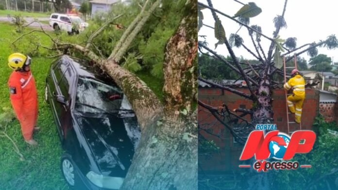 No bairro Bonato, uma árvore caiu em cima de um carro.
