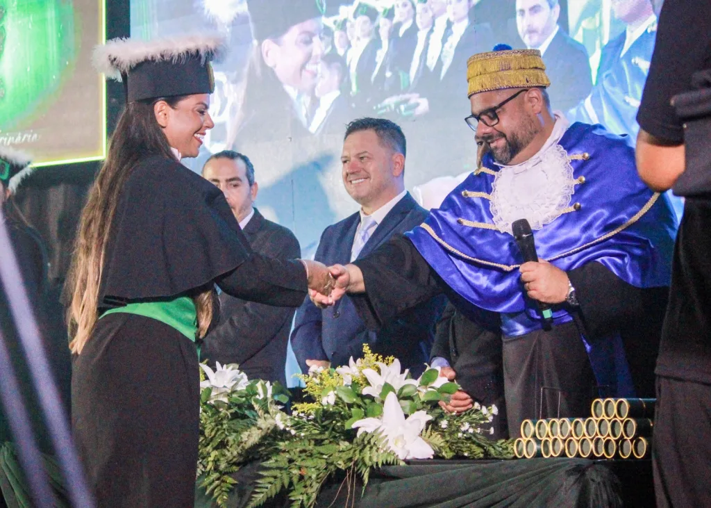 A oradora Érica Salla Heman relembrou a trajetória acadêmica da turma, enquanto o juramentista Thiago Hertz Nunes reafirmou o compromisso ético da profissão com a saúde pública e o bem-estar animal.