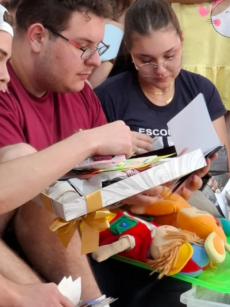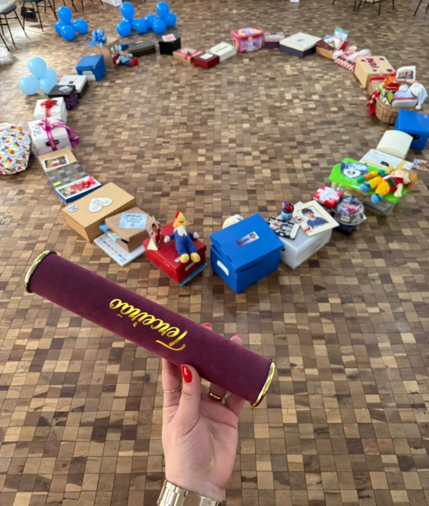 Cada aluno recebeu uma caixa de memórias, preparada com carinho pelas famílias. Itens simbólicos e cheios de significado mostraram o quanto cada trajetória é valorizada e celebrada.