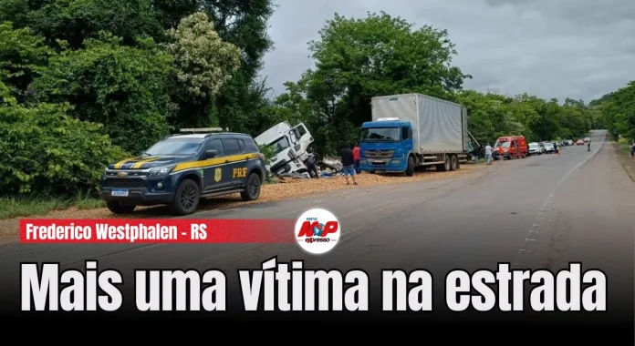 Frederico Westphalen – RS – (Região de Palmeira das Missões) – Um acidente envolvendo três caminhões causou a morte de Luiz Sousa e deixou dois motoristas feridos na manhã deste sábado (8) na BR-386. Um dos veículos transportava serragem, que ficou espalhada pela pista, deixando o trânsito em meia pista no sistema de pare e siga.