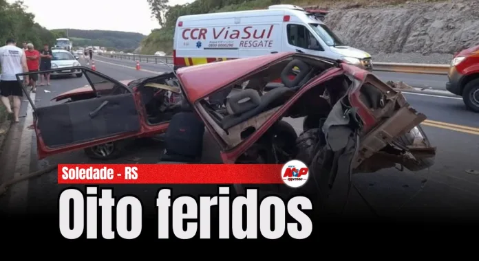Soledade – RS – (Região de Passo Fundo) Um acidente deixou oito pessoas feridas na BR-386, em Soledade, após a colisão entre três carros. O caso envolveu um Monza, um Onix e uma EcoSport e mobilizou equipes de resgate e a Polícia Rodoviária.