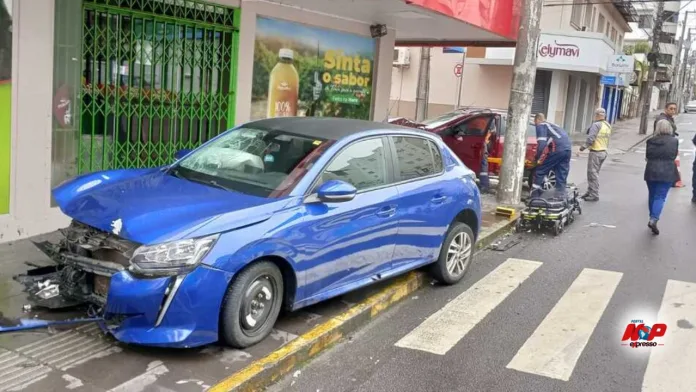 Com a força da batida, um dos veículos atingiu a parede de um supermercado. O choque chamou a atenção de moradores e comerciantes da região, que presenciaram a movimentação no local.