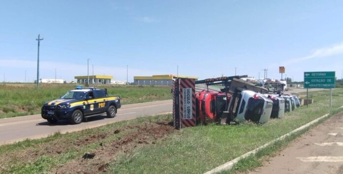 Polícia Rodoviária Federal investiga as causas. Acidente ocorreu no km 671. O gol ia para Santo Antônio das Missões. A carreta vinha no sentido oposto. O veículo transportava carros para exportação.