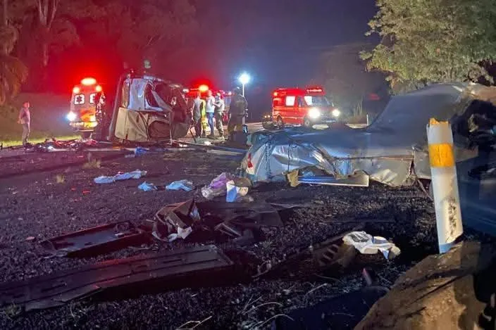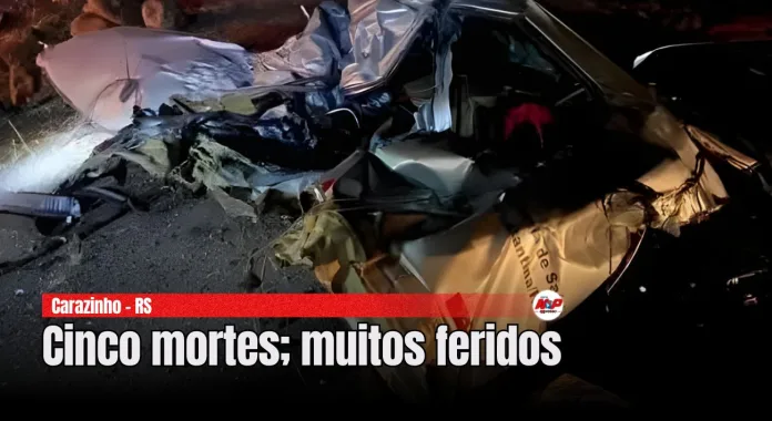 Carazinho – RS – (Região de Passo Fundo). Cinco pessoas morreram e quatro ficaram feridas num acidente grave na noite de sexta (19). A colisão envolveu um caminhão e um micro-ônibus da saúde de Constantina, na BR-386.