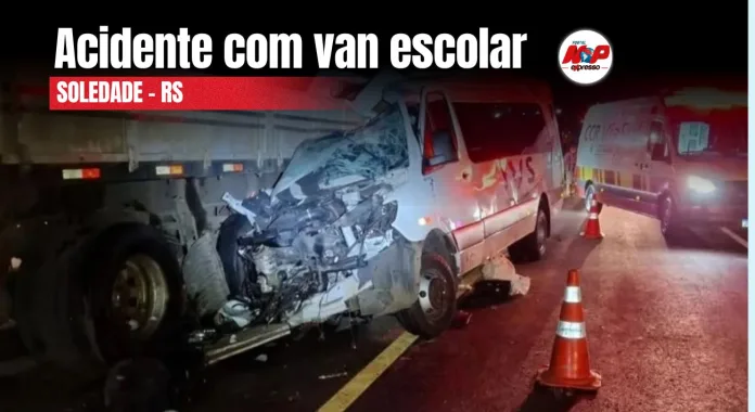 Soledade – RS – A batida foi entre uma van e um caminhão, e causou a morte de uma mulher e ferimentos em outras 14 pessoas. O caso foi na noite de sexta-feira na BR-386. O grupo voltava de um passeio no litoral.