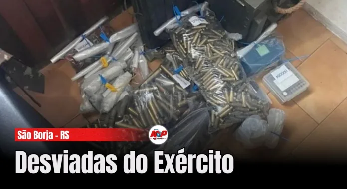São Borja – RS – Uma investigação revelou um possível esquema de desvio de armas, munições e explosivos. O caso começou quando um soldado tentou sair do quartel com projéteis escondidos na mochila. A partir da análise do celular dele, surgiram indícios de outros envolvidos e a investigação avançou até chegar a buscas nas casas de três praças.