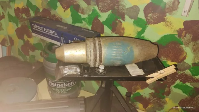 O material estava na casa de um CAC (Colecionador, Atirador e Caçador), onde também foram encontradas 12 armas, pólvora e espoletas.