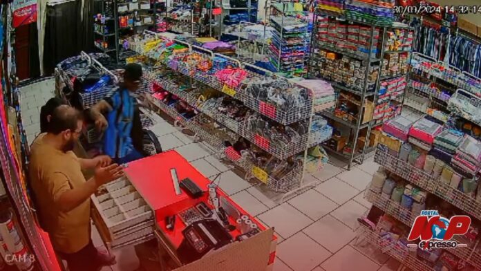 As câmeras de segurança registraram o momento do assalto, mostrando que 12 pessoas, entre clientes e funcionários, estavam na loja, incluindo uma criança de colo. Os assaltantes entram, anunciam o assalto e encurralam as vítimas em um local fora do campo de visão das câmeras. A ação dura cerca de quatro minutos. Segundo a Polícia, os criminosos levaram aproximadamente R$ 15 mil dos caixas da loja. Felizmente, ninguém ficou ferido.