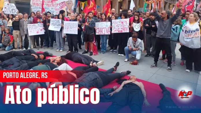 Porto Alegre, RS – Dezenas de pessoas se reuniram na Esquina Democrática, em Porto Alegre, para protestar contra a megaoperação policial no Rio de Janeiro. Entidades como a Coalizão Negra por Direitos, o Coletivo Favela UFRGS e a Frente Negra Gaúcha denunciaram o racismo e a violência no Complexo da Penha e no Morro do Alemão.