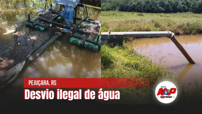 Pejuçara (Região de Cruz Alta), RS – A Brigada Militar flagrou na quinta-feira (11), um desvio de água em uma propriedade rural de Pejuçara. A equipe confirmou dois pontos de captação em um córrego após receber denúncia sobre uso irregular para irrigação.