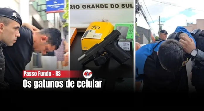 Passo Fundo – RS – (Região Norte) – A Brigada Militar agiu rápido e prendeu dois sujeitos que assaltaram uma loja de celulares na manhã desta terça-feira. O crime aconteceu na Avenida Brasil, bem pertinho do shopping, quando o dono abria o comércio. Os bandidos levaram dezenas de aparelhos e causaram um prejuízo que chegava a 100 mil reais.