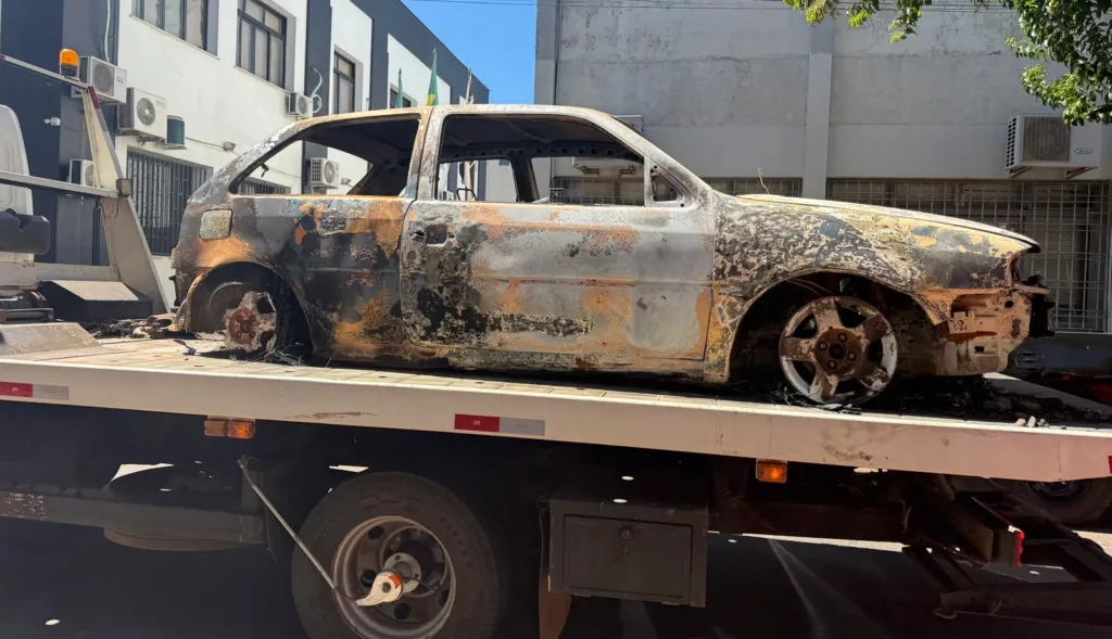 Carro incendiado com corpo no porta-malas