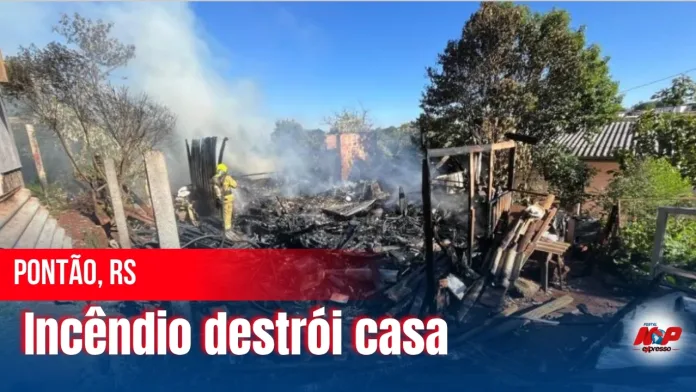 Pontão (Região de Passo Fundo), RS – Um incêndio atingiu uma casa de madeira na Rua Leonel dos Santos, em Pontão, por volta das 7h desta terça-feira (4). As chamas consumiram completamente o imóvel antes da chegada dos Bombeiros. Um caminhão pipa da prefeitura realizou os primeiros trabalhos de combate.