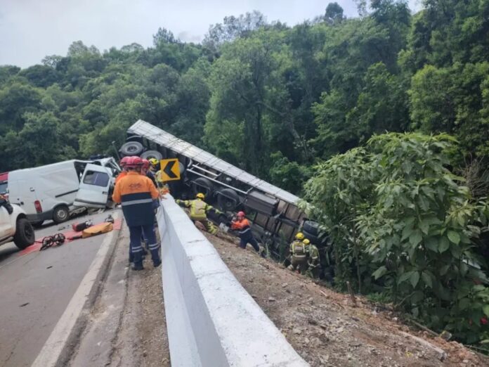 Região de Caxias do Sul e Flores da Cunha – Na manhã desta terça-feira (12), um grave acidente ocorreu no km 92 da ERS-122. A colisão envolveu três veículos e resultou na morte de Rubens Luciano Neres, de 53 anos, que estava como passageiro em uma van atingida frontalmente por uma carreta.