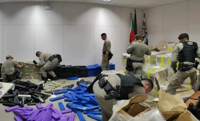 O material apreendido estava sendo contabilizado ao longo da manhã, confirmando a magnitude da operação e destacando a importância da ação policial.