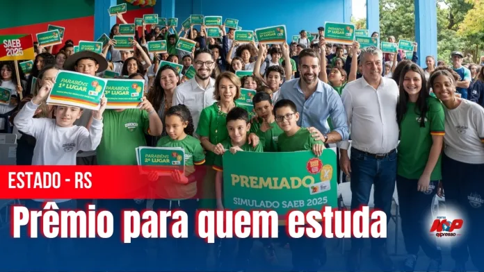 Porto Alegre (Região Metropolitana), RS – O governador entregou as primeiras premiações em dinheiro a estudantes que se destacaram no simulado do Saeb 2025. A cerimônia ocorreu no Instituto Estadual de Educação Paulo Gama, que teve 91,7% de participação dos alunos. O programa faz parte dos incentivos à educação lançados pelo governo em agosto e alcançou 167 mil estudantes em todo o estado.