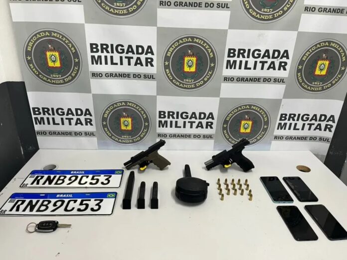 Caxias do Sul – Policiais da Brigada Militar abordaram duas pessoas em um veículo clonado na noite de quinta-feira (28). Durante a revista, foram encontradas duas pistolas 9mm, seis carregadores e munições. Os suspeitos admitiram que entregariam as armas a outros dois indivíduos.