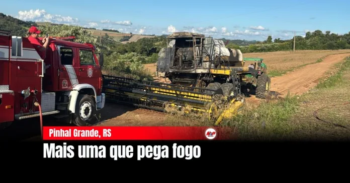 Pinhal Grande (Região de Santa Maria), RS – Os Bombeiros Voluntários de Nova Palma atenderam, na quarta-feira (22), um incêndio em uma máquina agrícola no interior de Pinhal Grande.