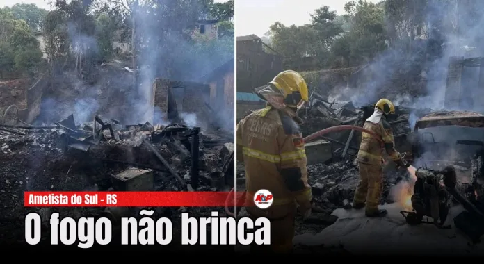 Ametista do Sul – RS – (Região de Frederico Westphalen) – Um incêndio atingiu três residências no início da noite deste sábado, 20, por volta das 18h, no Bairro Bela Vista. O fogo começou em uma casa onde morava um senhor sozinho e se espalhou rapidamente para imóveis vizinhos, que ficam muito próximos entre si.