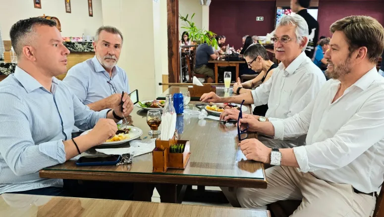 Abaixo, o presidente e vice do PDT em Santiago, Mauro Burmann e Paulo Rosado, com o deputado Cadó e João Lemes.