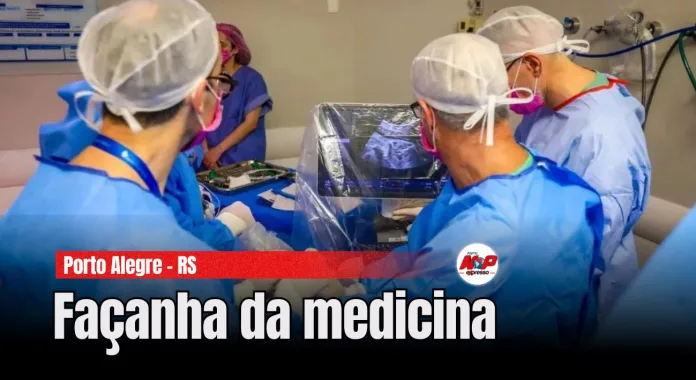 Porto Alegre – RS – (Capital). Uma equipe médica realizou uma cirurgia delicada no coração de um feto ainda dentro da barriga da mãe. Foi a primeira vez que o Hospital Moinhos de Vento fez esse tipo de operação. O bebê tinha um problema na válvula, o que impedia o sangue de ir para os pulmões e poderia atrofiar o lado direito do coração.