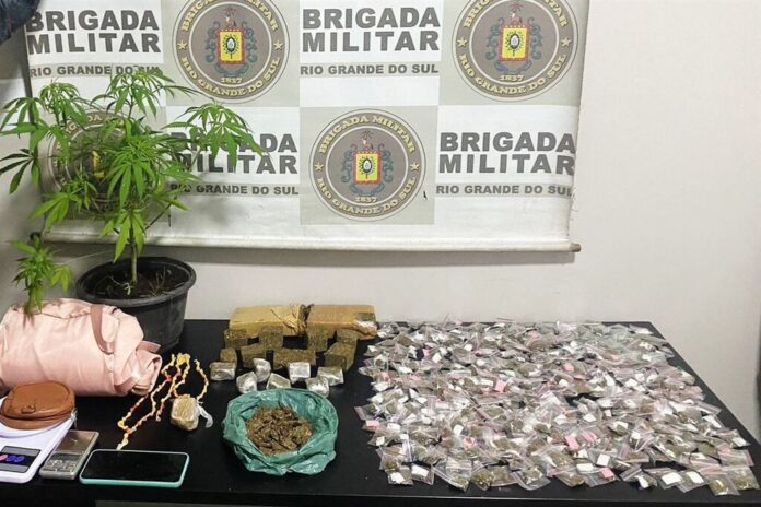 Santa Maria – Os policiais militares flagraram a traficante com 392 porções de maconha, um pé da planta, 58 porções de crack, duas balanças e um celular.