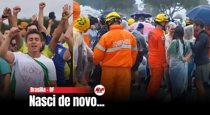 Brasília – DF – Uma manifestante atingida por um raio durante um ato na Praça do Cruzeiro, em Brasília, no domingo (25), afirmou que “nasceu de novo” após sobreviver à descarga elétrica. Patrícia Rosa, monitora escolar, estava entre os participantes da manifestação quando a tempestade atingiu o local.