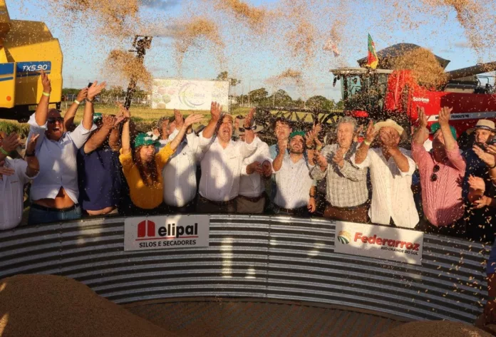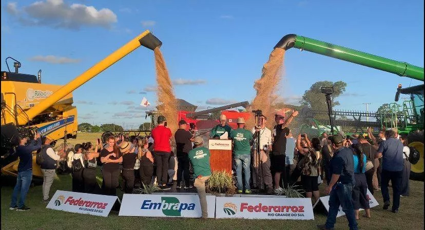 Capão do Leão (Região de Pelotas) – A cerimônia de abertura da colheita do arroz e grãos em terras baixas reuniu autoridades, produtores e entidades do setor. O evento, que simboliza a segurança alimentar, ocorreu na Estação Experimental da Embrapa e incluiu a colheita de soja, representando a integração de culturas.
