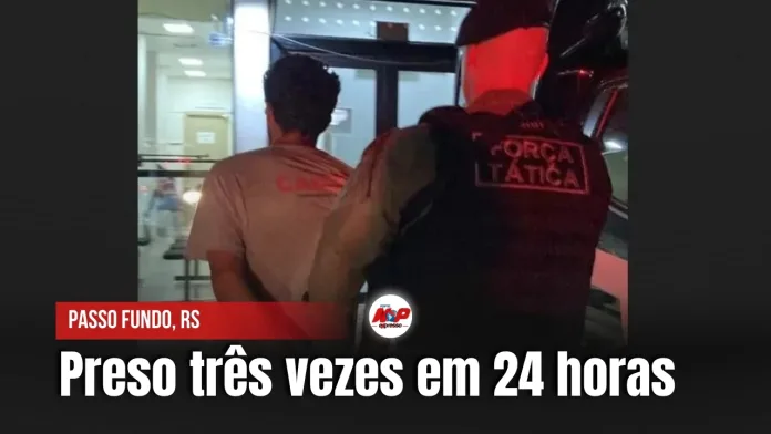 Passo Fundo, RS – A Brigada Militar teve um trabalho dobrado com um criminoso em Passo Fundo. O sujeito conseguiu a proeza de ser preso três vezes em um único dia. Na última vez, na noite de quinta-feira, ele tinha acabado de ser solto na delegacia quando, cinco minutos depois, tentou furtar um caminhão estacionado a poucos metros da DPPA.