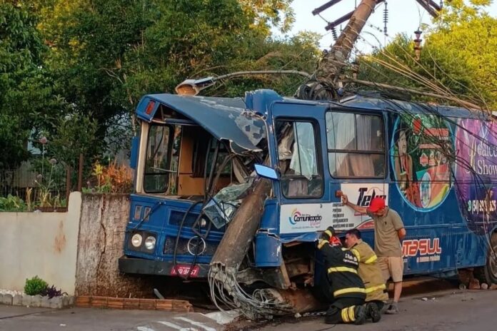 Novo Barreiro – Região de Palmeira das Missões – Na tarde de quinta-feira (14), um acidente ocorreu na Avenida São João Batista. Um ônibus com placas de São Domingos perdeu o controle ao sair do trevo do município e colidiu com um poste de energia elétrica. A batida causou danos no veículo e na rede elétrica, deixando o município sem energia.