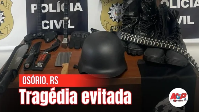 A Polícia Civil de Osório frustrou um ataque planejado a uma instituição de ensino após uma operação realizada na madrugada de quinta (27/11/25). A ação resultou na apreensão de armas brancas, objetos táticos e outros materiais que seriam utilizados na ação violenta.