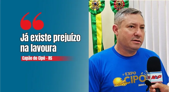 Capão do Cipó – RS – (Região de Santiago) – O prefeito Adair Cardoso, PDT, decretou situação de emergência por causa da estiagem, mas confirmou a realização da Expo Cipó no fim de abril e detalhou como o município trabalha para manter investimentos mesmo diante de prejuízos no campo. Capão do Cipó é um dos maiores produtores de soja do Estado e já soma cinco anos seguidos de perdas.