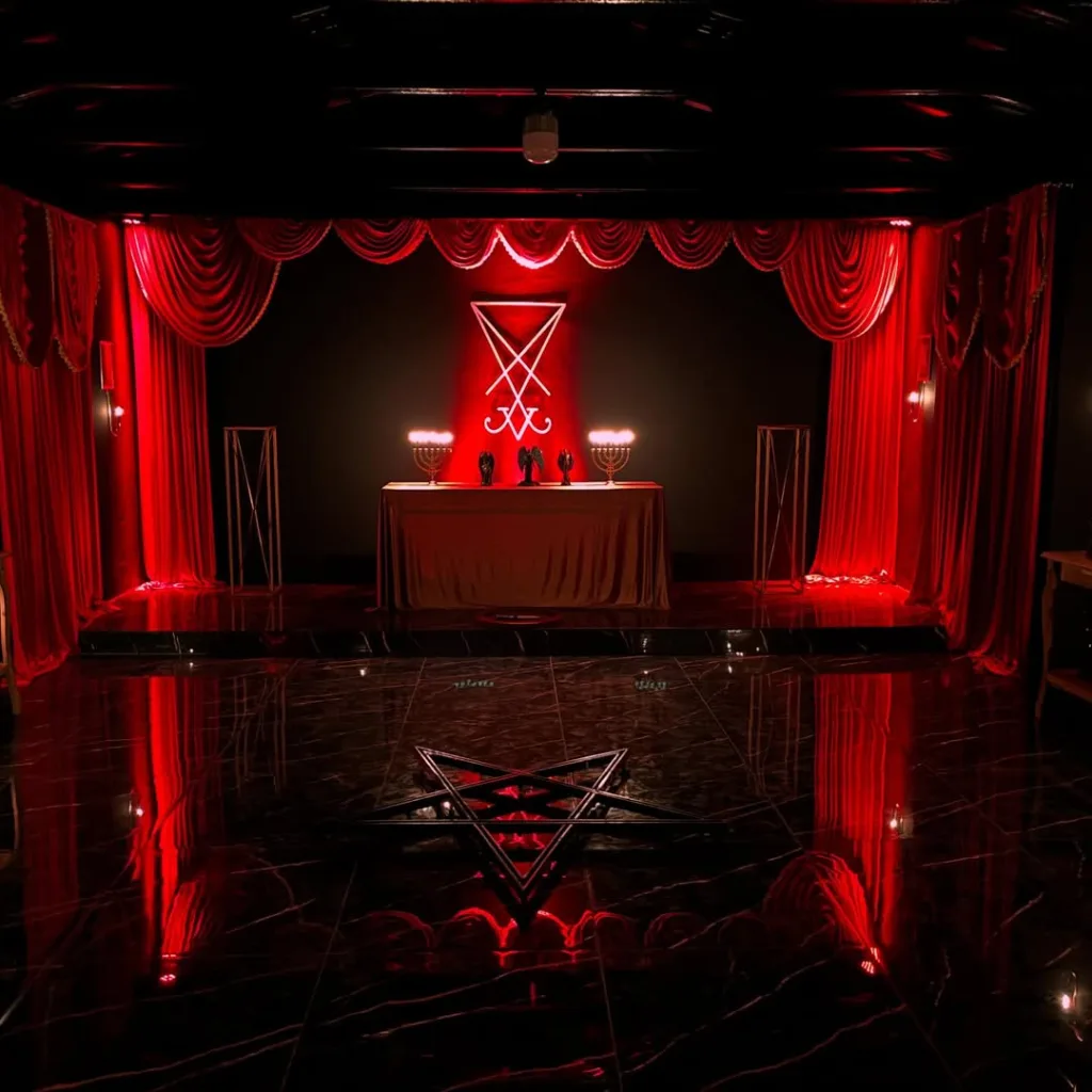O templo fica na Região Metropolitana, mas o endereço não foi divulgado por questão de segurança. A decoração chama atenção. Tem cores preto e vermelho, além de gárgulas e pentagramas. A visitação será restrita a pessoas indicadas pelos próprios praticantes.